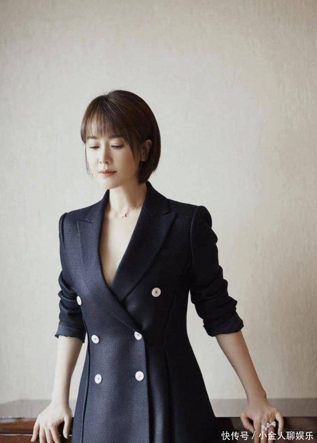 还有那个高丸子头,我之前扎过一次,直接变成“道姑本姑”,后来才懂里面的“小心机”:要加斜刘海!左小青的斜刘海刚好盖住后移的发际线,脸两边留的碎发还能修颧骨,丸子头扎得高高的但不紧绷,留点碎发在耳边,整个人都活起来了——你是不是也觉得扎丸子头显脸大?加个斜刘海试试,瞬间从“生硬”变“温柔”,和优雅的裙子搭起来,哪里像45岁?明明是30+的元气感!
